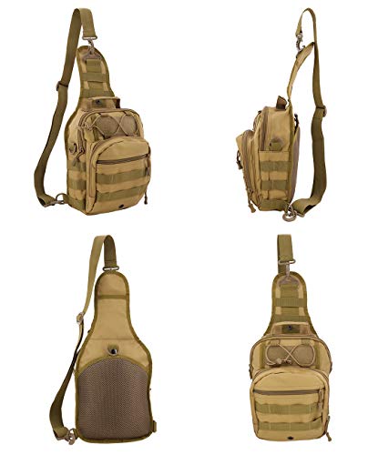 Gisdanchz Marsupio Militare Tattico Bicicletta Palestra Lavoro Cosciale Mini Mimetico Zaino Monospalla Militare Tattico Piccolo Viaggio Tracolla Montagna Esercito Molle Campeggio Uomo Donna Cachi