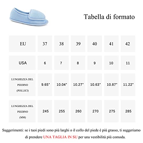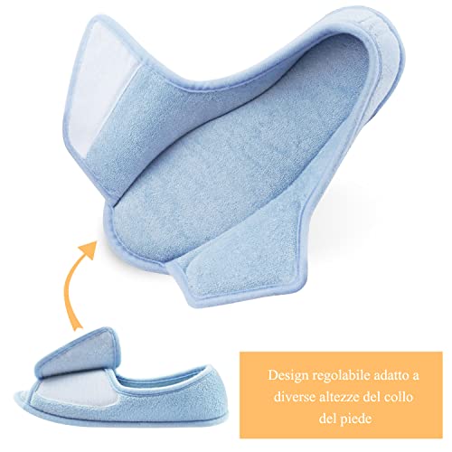 Git-up Donna Morbide Comode Pantofole Casa Calde Leggere e Antiscivolo Ciabatta con Soletta Memory Foam Regolabili diabetiche artrite Edema Piedi Punta Aperta Piatte Indoor/Outdoor Slippers, Blu 7