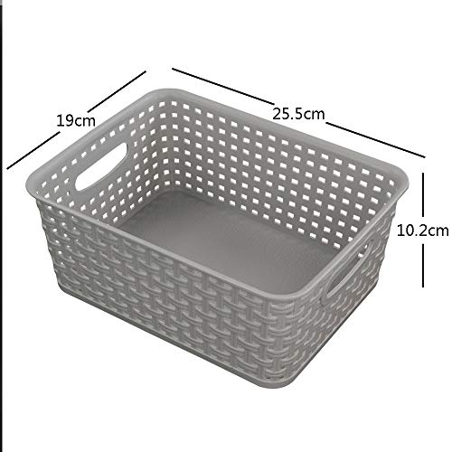 Gitany Set di 6 Grigio Cesto Portaoggetti in Plastica, Cesta Plastica Rattan, Cesta Rettangolare, Cestini Organizer da Cucina in Plastica