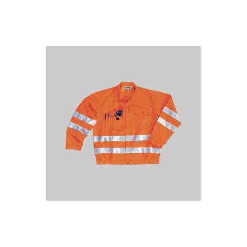 Tessuto 65% cotone e 35% poliestere, peso 210 g/mý. Due bande retroriflettenti orizzontali che avvolgono completamente l'addome e due che avvolgono entrambe le maniche. Collo a camicia, chiusura frontale con bottoni ricoperti da patta. Due tasche al petto applicate chiuse con pattina e bottone. Polsini fondo manica chiusi con bottone. Giubbino alta visibilita' tg. xl - col. giallo Abbigliamento alta visibilita'
