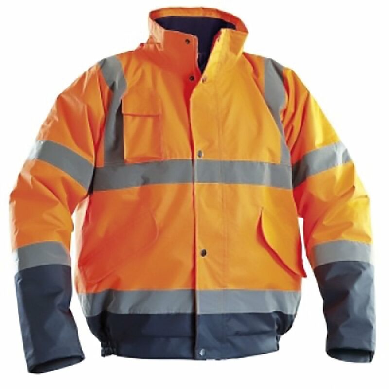 XXL Tessuto esterno in poliestere oxford 300D con spalmatura PU 195 gr/mq. Fodera 190T poliestere 50 gr/mq. Imbottitura in poliestere 160 gr/mq. Con cappuccio, 1 tasca al petto porta telefono, 2 tasche inferiori chiuse con pattina, 1 tasca interna. A norma EN 20471 - classe 3, EN 343 3:1.