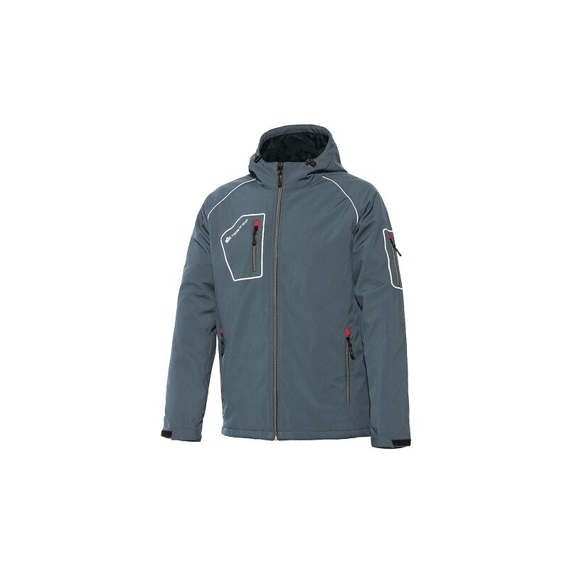 il cappuccio fisso assicura piena protezione, le 2 tasche anteriori molto ampie, una sul petto e una sull'avambraccio risultano molto pratiche e funzionali.Caratteristiche generaliTessutoSoftshell + membrana TPU W/P 5000 mm e MVP 1000 g/m2imbottitura 100 g/m2Dotazionicappuccio, 4 tasche esterne e una internaTaglieS-M-L-XL-XXL-3XLColoreGrigio e BluClasse sicurezzaEN ISO 13688:2013