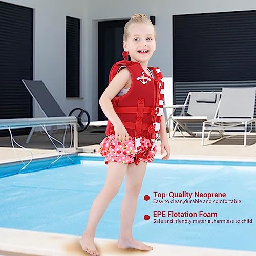 Giubbotto da Nuoto Bambino Gilet da Nuoto Galleggiante Veste da Nuoto Formazione Impara a Nuotare Giacca Nuotare Flottazione Veste Rosso 5-6Anni / 19-23kg