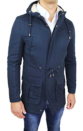 Giubbotto Parka Uomo Eskimo Giaccone Casual Invernale con Pelliccia (XL, Blu)