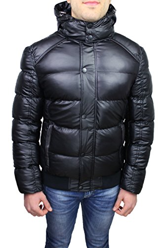 Giubbotto Piumino Uomo Nero Sartoriale Casual Invernale Giacca Bomber Ecopelle (L)