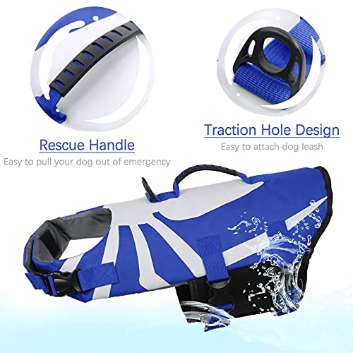 Giubbotto Salvagente per Cani, Giacca di Salvataggio Protettivo Gilet Salvagente con Fissaggio Regolabile e Manico per Cani di Taglia Piccola Media e Grande(Blu, S)