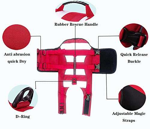 Giubbotto di Salvataggio per Cani Regolabili,Giubbotto di Galleggiamento per Cani,Giubbotto di aiuto al Galleggiamento Cani con Manico,Buona Galleggiabilità in Mare,Piscina,Lago (M,Rosso)