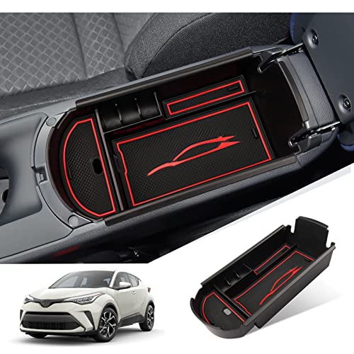 GIUD Compatibile con Toyota C-HR 2016-2023 Scatola Portaoggetti da Braccioli, Vano Portaoggetti con Tappetino Antiscivolo Toyota chr Accessori (Rosso)