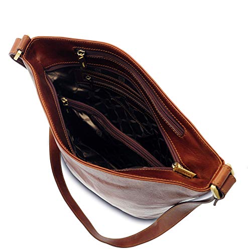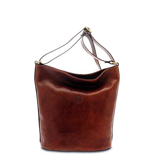 GIUDI ® - Borsa Donna in pelle vacchetta, secchiello, vera pelle, tracolla, Made in Italy. (Marrone)