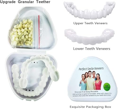 Design raffinato - I nostri denti cosmetici aiutano a nascondere i denti mancanti, piegati, macchiati e rotti. Libertà di sorridere, mangiare e bere mentre si indossa. Scatta sui denti delle faccette. Denti finti.