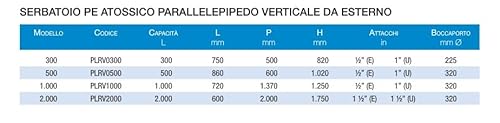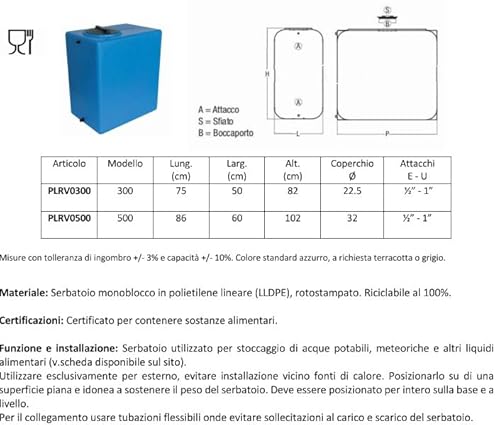 GIURGOLA Serbatoio Polietilene per Acqua Parallelepipedo Rettangolare Alto MOD. 500 Litri Made in Italy