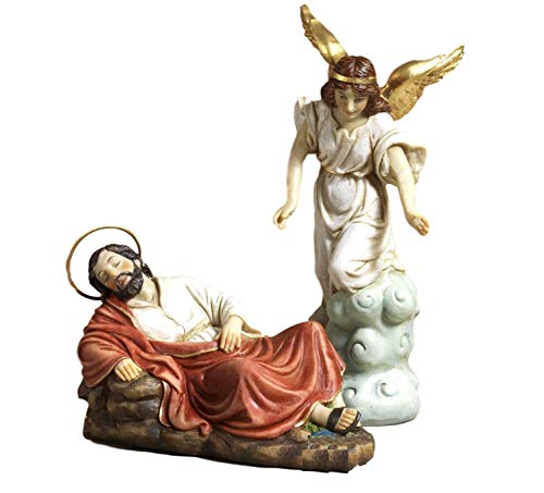 Set San Giuseppe dormiente con Angelo. 2 Statue in Resina Presepe Pasquale by Paben