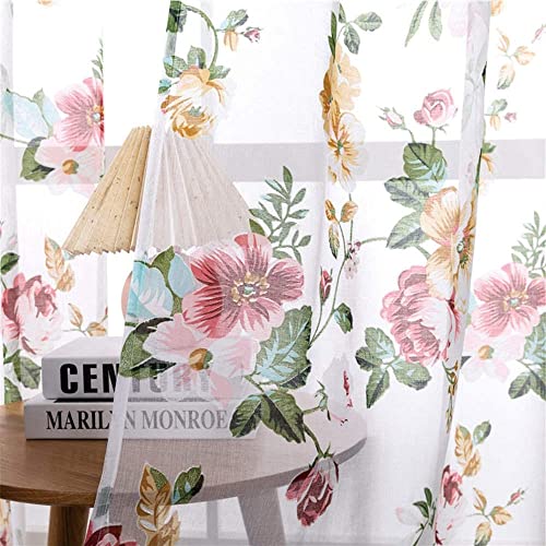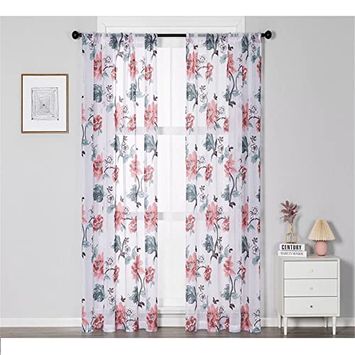 GIVBRO Tende trasparenti in voile con motivo a fiori di peonia, per la decorazione della casa, colore rosso, 100 x 270 cm