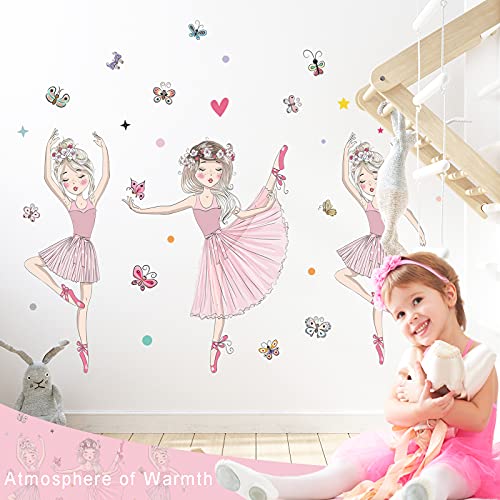 Giyiprpi - 3 adesivi da parete con ballerina, rimovibili, con farfalle, decorazione da parete da parete per ragazze, camera da letto, soggiorno, sala da ballo