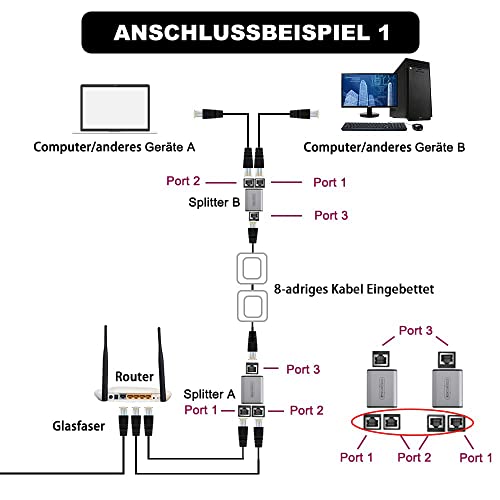 GizmoVine Splitter Ethernet [2022 Aggiornato] Connettore da 1 a 2 per Adattatore Cavo RJ45 100mpbs (2 Pezzi)