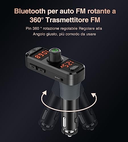 【Ricarica Rapida 42W】- Questo trasmettitore bluetooth è dotato di tre porte di ricarica, per un totale di 42W, adattandosi perfettamente agli accendisigari delle auto per una connessione stabile. Presenta una porta USB standard da 6W e due porte di ricarica rapida da 18W (PD3.0 e QC3.0), ricaricando quattro volte più veloce delle porte normali. Multiple protezioni come sovratensione, sovracorrente, cortocircuito e sovratemperatura assicurano una ricarica sicura mentre si gode di musica nitida.