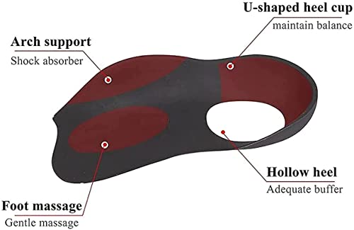 Camminata confortevole: l'area di supporto dell'arco si adatta all'arco del piede, l'area di avvolgimento del tallone fissa la posizione della soletta, l'area di massaggio rende confortevole la pianta del piede quando si sta in piedi e si cammina, il design cavo del tallone garantisce un'adeguata ammortizzazione del tallone.
