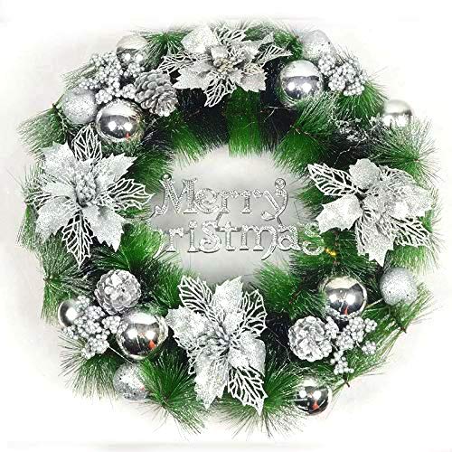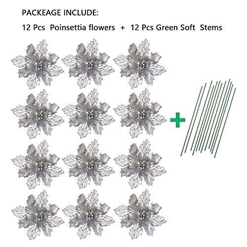 GL-Turelifes Confezione da 12 fiori di stella di Natale artificiali glitterati, ghirlanda di Natale, albero di Natale, 16 cm, diametro con 12 punture morbide verdi (argento)