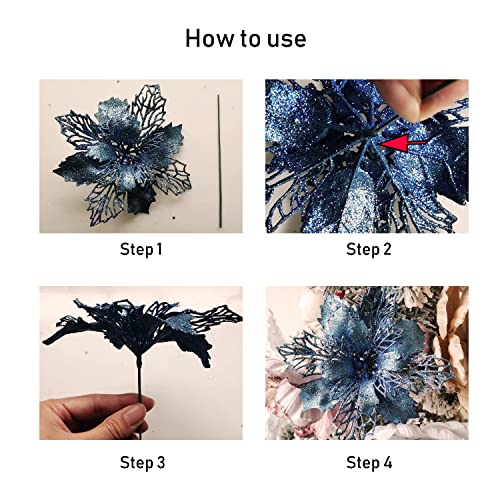 Fiori di stella di Natale glitterati di alta qualità: ogni fiore di Natale con molti glitter in polvere, scintillanti, splendidi. I fiori di Natale sono piatti e non si deformano facilmente.