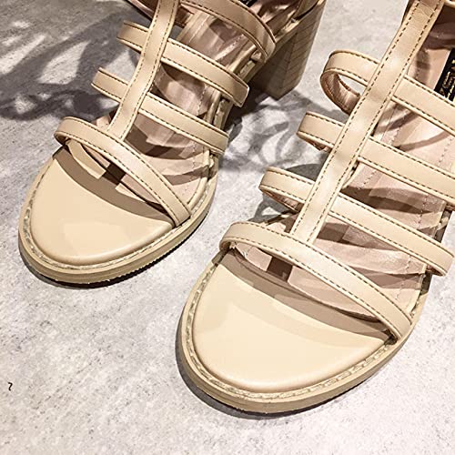 Gladiator Sandali per le donne al ginocchio di alta moda estate tacco medio Open Toe classico stivali alti in gabbia, Nero, 37.5 EU