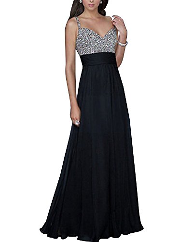 Gladiolus Donna Vestiti Abito Lungo Eleganti Senza Spalline di Paillettes per Cocktail Nozze Festa Nero M