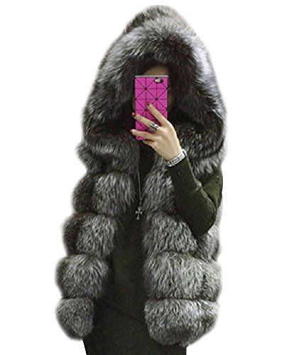 Gladiolus Gilet Faux Pelliccia per Donna Senza Maniche con Cappello Caldo Overcoat per Festa Wedding Silber Volpe S