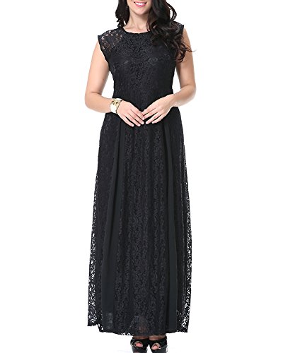 GladiolusA Abiti Lunghi Vestito Donna Taglie Forti Vestito Senza Maniche Vestiti in Pizzo Vestito Party Club Cocktail Vestiti Nero 2XL