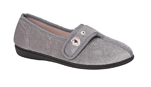 GladRags Pantofole da donna con chiusura a strappo, Grigio, Taglia 6 UK, 39 EU