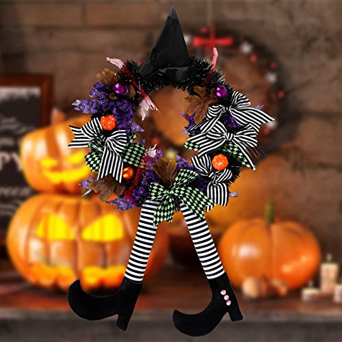 【Design unico】 Questa ghirlanda di Halloween è composta da vari elementi, tra cui cappello da strega, gambe, nastro, finte foglie d'acero, zucca simulata, ecc., E si fonderà con una festa a tema Halloween