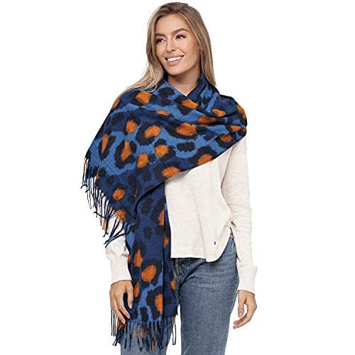 Glamexx24 Sciarpa XXL da donna, con motivo leopardato, 3 colori, con frange, oversize, Leopard blu marrone scuro, Taglia unica