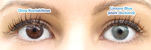 GLAMLENS Lenti a contatto colorate Limone Blue - azzurre - mensili - con porta lenti a contatto -blu naturali in silicone idrogel - 2 pezzi - senza correzione 0.00 diottrie lente a contatto