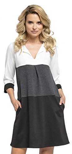 Glamour Empire. Vestito a Trapezio a Blocchi di Colore Apertura a Goccia. 303 (Grafite Melange & Nero, IT 46, L/XL)