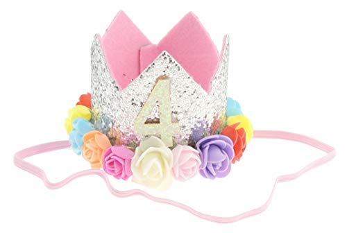 Glamour Girlz - Corona elastica per bambini e ragazze, con glitter per 4° quattro 4 anni, colore: Argento multicolore rose 4