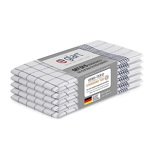 Glart 48KG1 Set di 5 strofinacci da cucina, 50x70 cm, 100% cotone certificato OEKO-TEX, a quadri grigi, prelavati