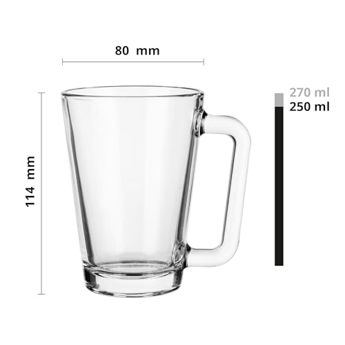 Glasmark Krosno - Set di 6 bicchieri, 250 ml, bicchieri in vetro con manico, orecchio colorato, bicchiere da bere, tazza, bicchiere in vetro con auricolare, lavabile in lavastoviglie