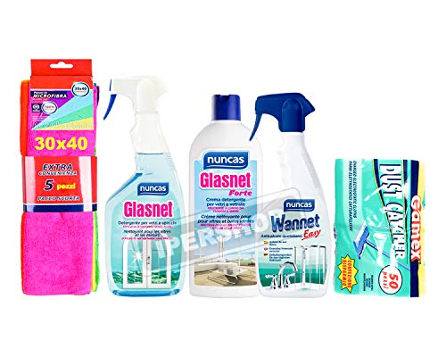 SET: GLASNET SPRAY 750ML+GLASNET FORTE 500ML + WANNET EASY 500ML+ PANNI GAMEX+Pacco 5 Pezzi Panni Microfibra 30X40 cm