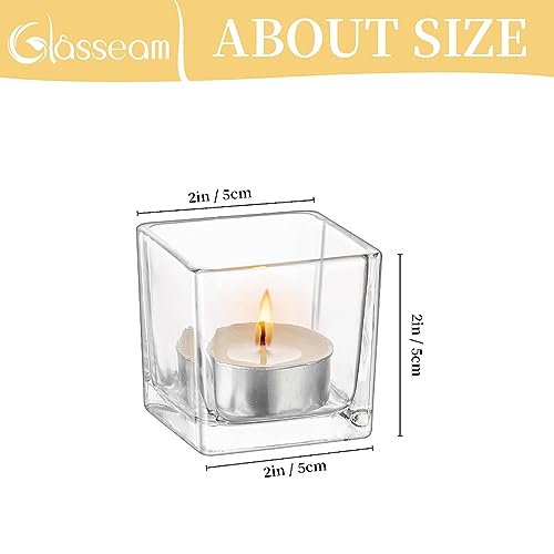 Simpatici portacandele in vetro a forma di cubo: 5 cm x 5 cm Lunghezza*Altezza | Portacandele quadrati in vetro | Si adattano bene a candele votive a cera o senza fiamma, tea light, candele galleggianti e piccoli fiori. Convenienti, adorabili e durevoli per le decorazioni di tutto l'anno.