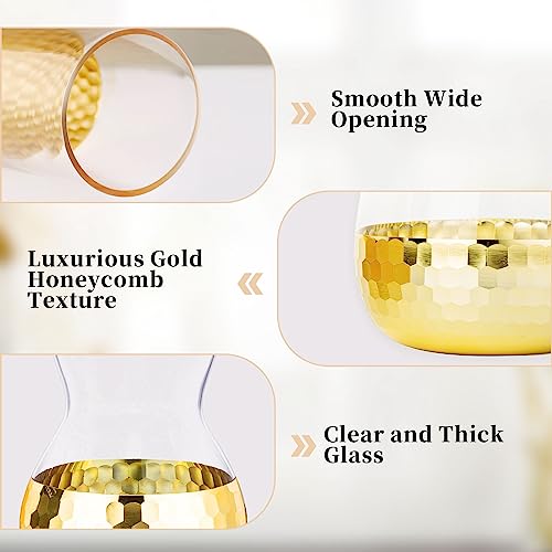 SPECIALE DECORO HONEYCOMB DORATO: Ogni piedistallo in vetro è rifinito a mano individualmente da abili artigiani. Vetro cristallino con lamina d'oro sullo strato esterno a forma di nido d'ape.