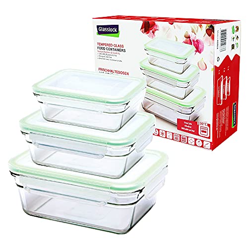 Glasslock (GL-529, 485ml, 970ml, 1730ml) Rettangolare Contenitore Alimentare - Forno Type
