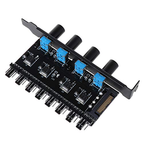 GLASSNOBLE Fan Hub,PC 8 Channels Fan Hub 4 Knob Cooling Fan Speed Controller for CPU Case HDD VGA PWM Fan PCI Bracket 12V Fan Control Power Supply SATA/4Pin Interface Sata