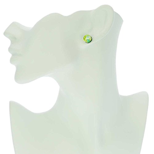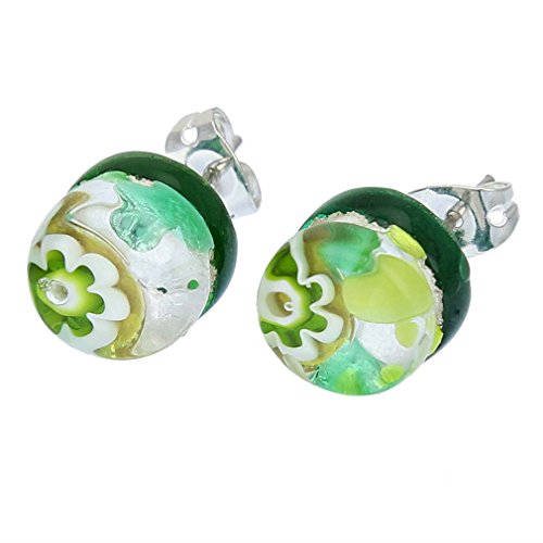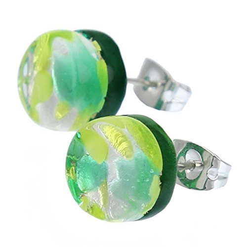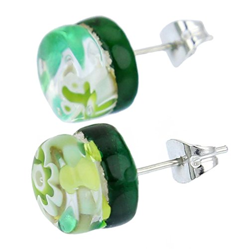 GlassOfVenice Murano Glass Venetian Reflections Round Stud Earrings - Green Silver