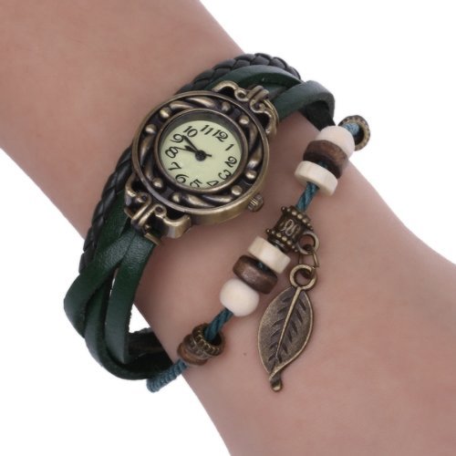 Gleader Orologio Polso al Quarzo Bracciale Donna Farfalla Cinturino Verde Cuoio Classico