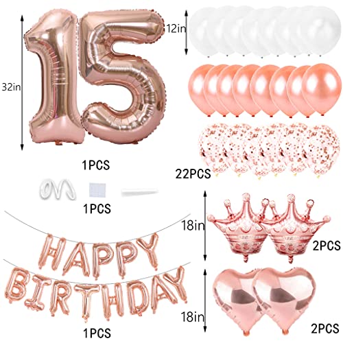 Glecxuy Deco compleanno 15 anni ragazza, Palloncini oro rosa 15° compleanno Deco, Palloncini foil giganti 15, Palloncini elio 15 Deco, Palloncini ghirlanda buon compleanno festa 15° compleanno Deco