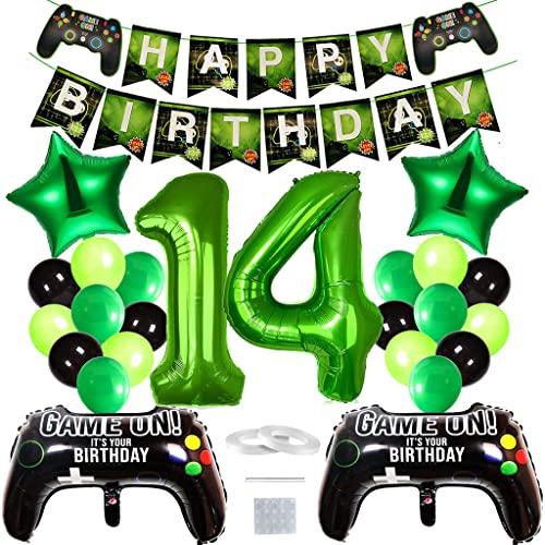 Glecxuy Decorazione di Compleanno per Videogiochi Ragazzi 14 Anni, Decorazione di Gioco Palloncini 14° Compleanno di Buon Compleanno, Controller di Gioco Palloncino Decorazione Ragazzi 14° Compleanno