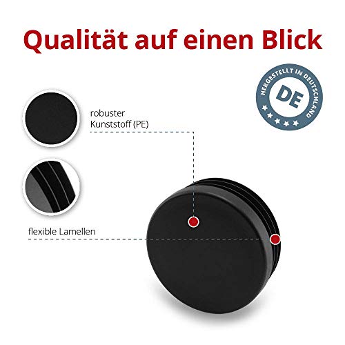 Tappo disponibile in un'ampia scelta: tappi neri in molti diametri diversi per tubi rotondi in acciaio e altri tubi. Si prega di misurare sempre sul mobile o sul tubo e di non fare riferimento ai vecchi tappi. Per determinare il tappo appropriato, è necessario misurare il diametro interno ed esterno del tubo.