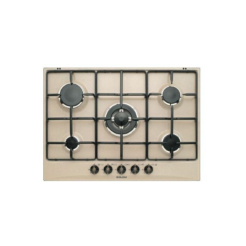Glem Gas GT755SA. Colore del prodotto: Sabbia, Posizionamento dell'apparecchio: Da incasso, Tipo di piano cottura: Gas. Bruciatore piccolo: 1000 W, Bruciatore medio: 1750 W, Bruciatore grande: 3000 W. Tipo di controllo: Manopola, Posizione di controllo: Frontale. Larghezza: 685 mm, Profondità: 500 mm, Altezza: 30 mm