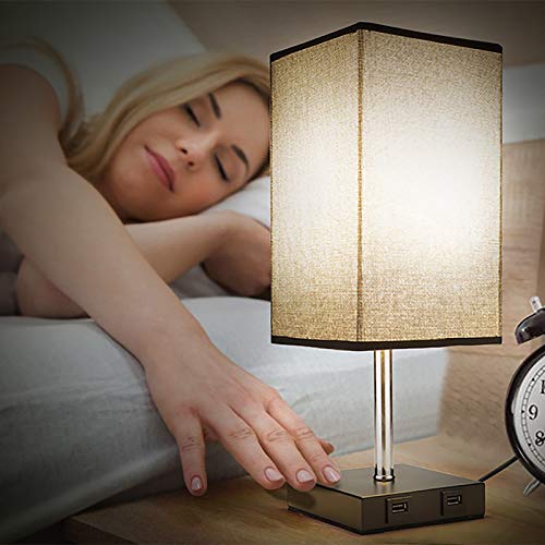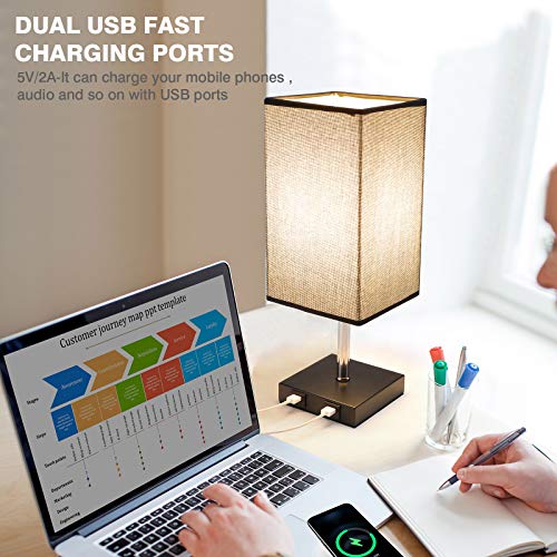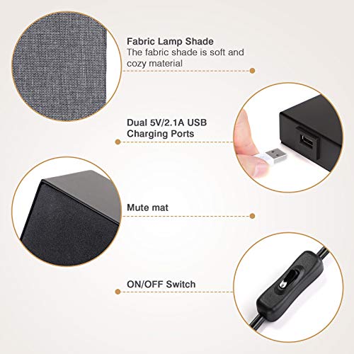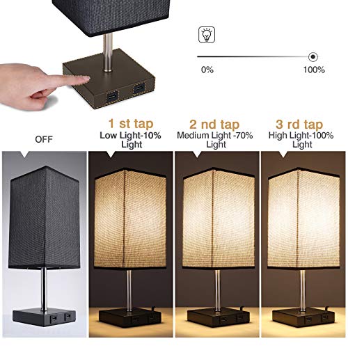 Glighone Lampada da Comodino con Controllo Touch, Dimmerabile Lampada da Tavolo con Porte di Ricarica USB e Paralume in Tessuto per Camera, Soggiorno, Caffetteria, Ufficio【2 Pezzi - Lampadine Inclusa】