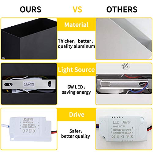 Sorgente Luminosa Avanzata COB: Ci sono due perle di luce appositamente progettate COB sui lati superiori e inferiori di lampade da parete, disponibili in bianco caldo 3000K e luce di colore freddo 6000K per voi tra cui scegliere. Rispetto alle sorgenti luminose ordinarie, le sorgenti luminose tipo COB sono più efficienti dal punto di vista energetico, hanno una durata più lunga, emettono luce relativamente morbida e causano poco danno agli occhi.