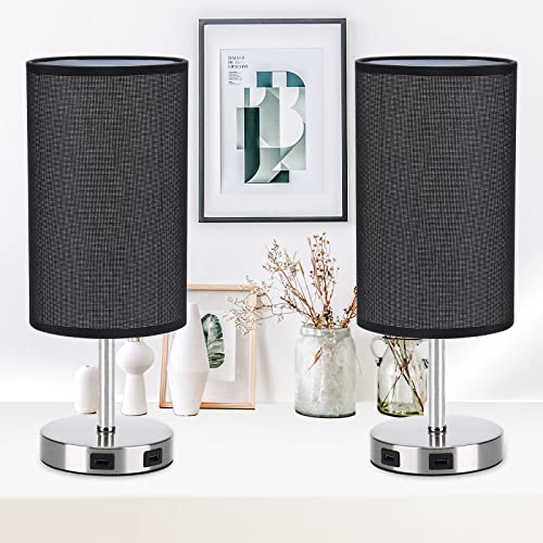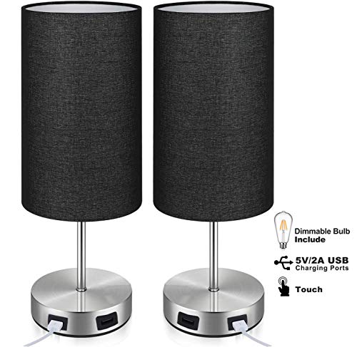 Glighone 2 Pezzi Lampada da Comodino USB, Touch Controllo Pieno Lampada da Tavolo E27, Lampadina Inclusa, Dimmerabile Lampada da Tavolo in Tessuto per Camera Soggiorno Ufficio (Lampadina Inclusa)