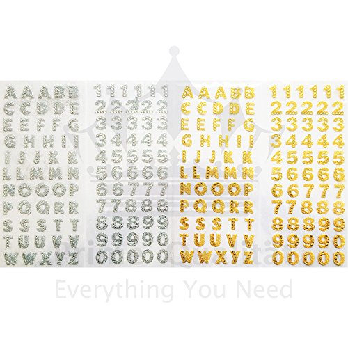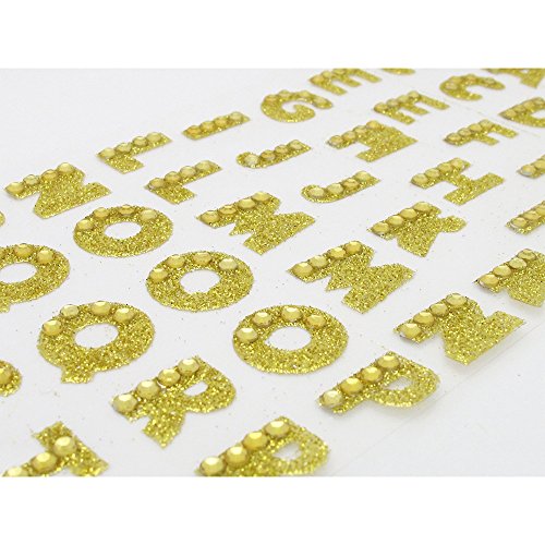 Adesivi glitterati con strass di cristallo su parti delle lettere.